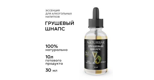 Essenciya Grushevyj shnaps, 30 mlNatural'naya vkusoaromaticheskaya essenciya dlya sozdaniya shnapsa v domashnih usloviyah.Primenenie: Dobav'te soderzhimoe flakona v Vash distillyat, magazinnuyu vodku ili spirt, razbavlennyj vodoj do nuzhnoj kreposti,..