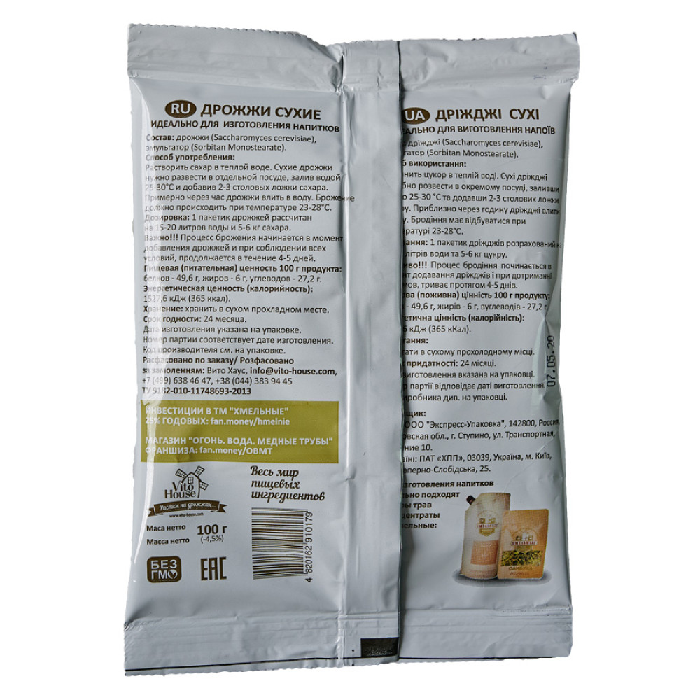 Specialized dry yeast "Ukrainian Hops" 100 gr. ideal for various fermentation of starch and sugar-containing raw materials.