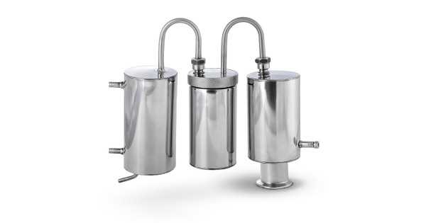 ​ The design of Abramov with a clamp is designed for the production of pure and fragrant distillates at home. The principle of operation is based on the consecutive connection of two dry-cells, each of which separates fusel oils and other fractions ..