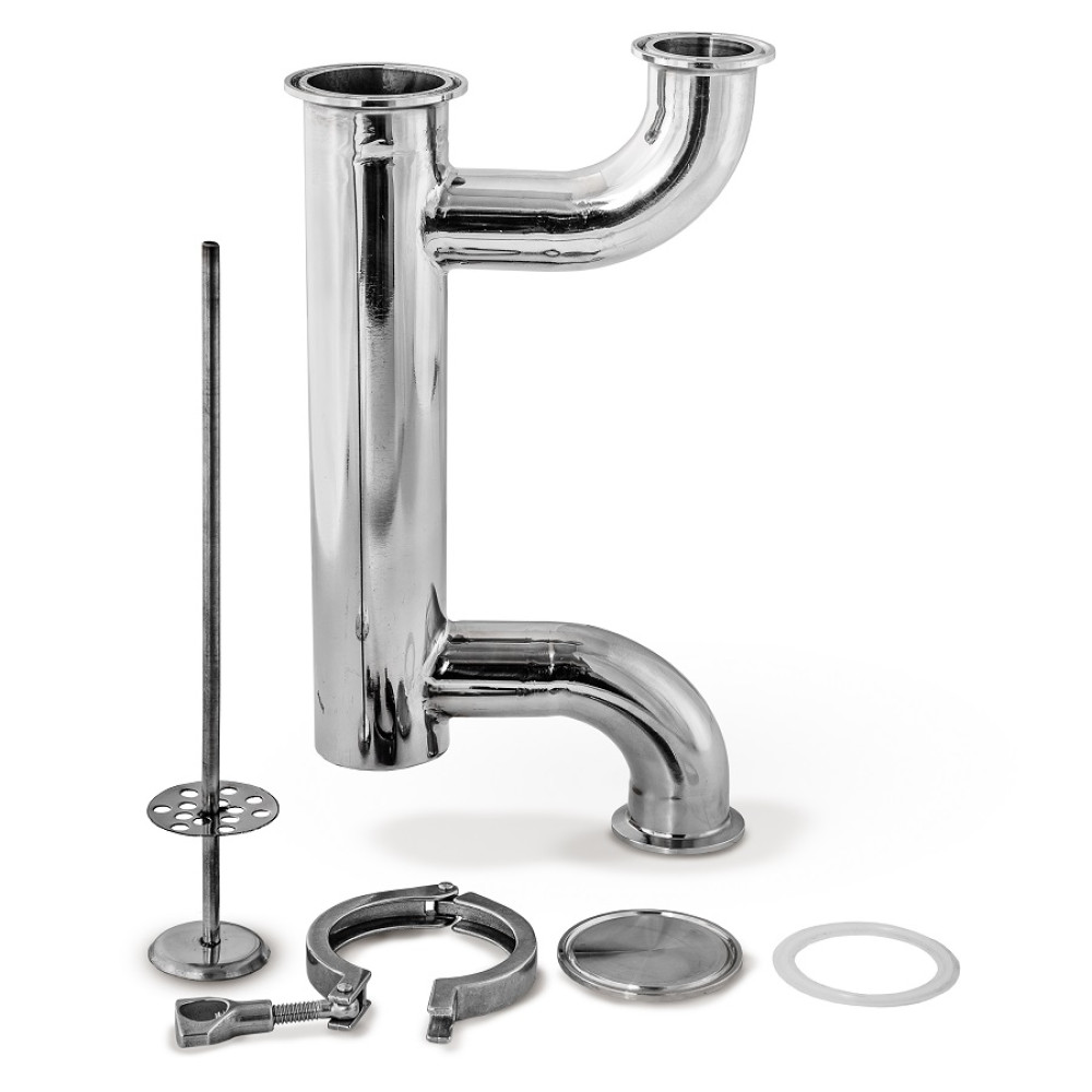 A professional device for saturation of alcohol vapors with aromas of herbs or berries during distillation, thereby obtaining a noble drink, with a pronounced bouquet! Insisting of alcohol on herbs and spices takes 7-10 days, and distillation with a gin-basket lasts 5-6 hours. Moreover, when using this technology, the consumption of additives is significantly reduced. The jin basket is placed between the distillation cube and the column. A 1.5-inch basket with a clamp connection is designed to flavor the drink by adding additional ingredients to the device: dried fruits, herbs, lemon crusts, etc. The basket design allows you to flavor the drinks at any stage of the beverage preparation. This should be done when selecting a "body." If you add the additives earlier, then the whole bouquet will go to the refinement of the "heads", which are not intended for use.