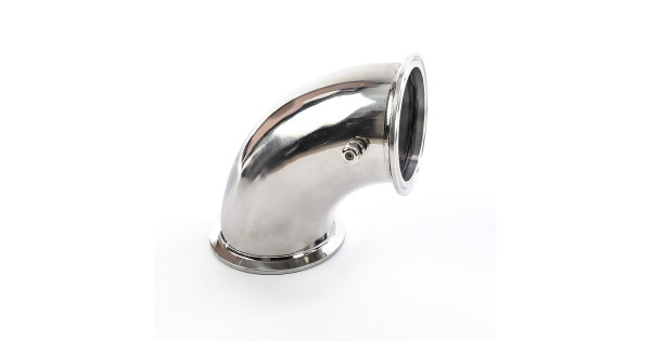 The connecting element provides reliable, strong and tight connection of pipes in a distillation column and a distiller. Transition of 90 degrees is made of food grade AISI 304 stainless steel. Fastening - under the clamp 1.5 inches (50.5mm)..