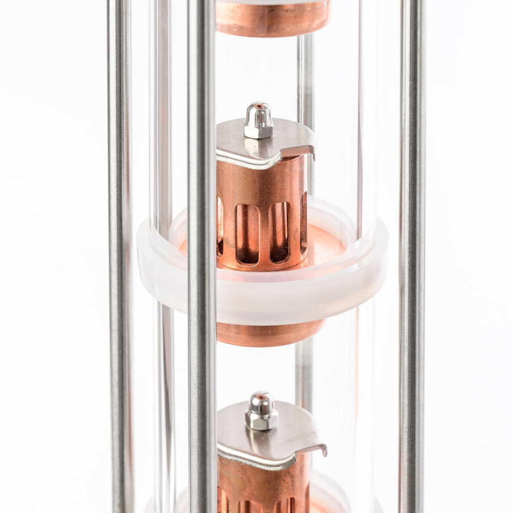 The floating column is constantly in contact with evaporating vapors and a chilling refluxing downward. Due to this, all fractions heavier than ethyl alcohol are returned back to the cube, and alcohol, purified from harmful substances, enters the refrigerator, where it condenses. The strength of the ready-made drink can reach 95 degrees, this is the optimal balance between cleaning up impurities and preserving the organoleptic properties of malt or fruit and berry raw materials.