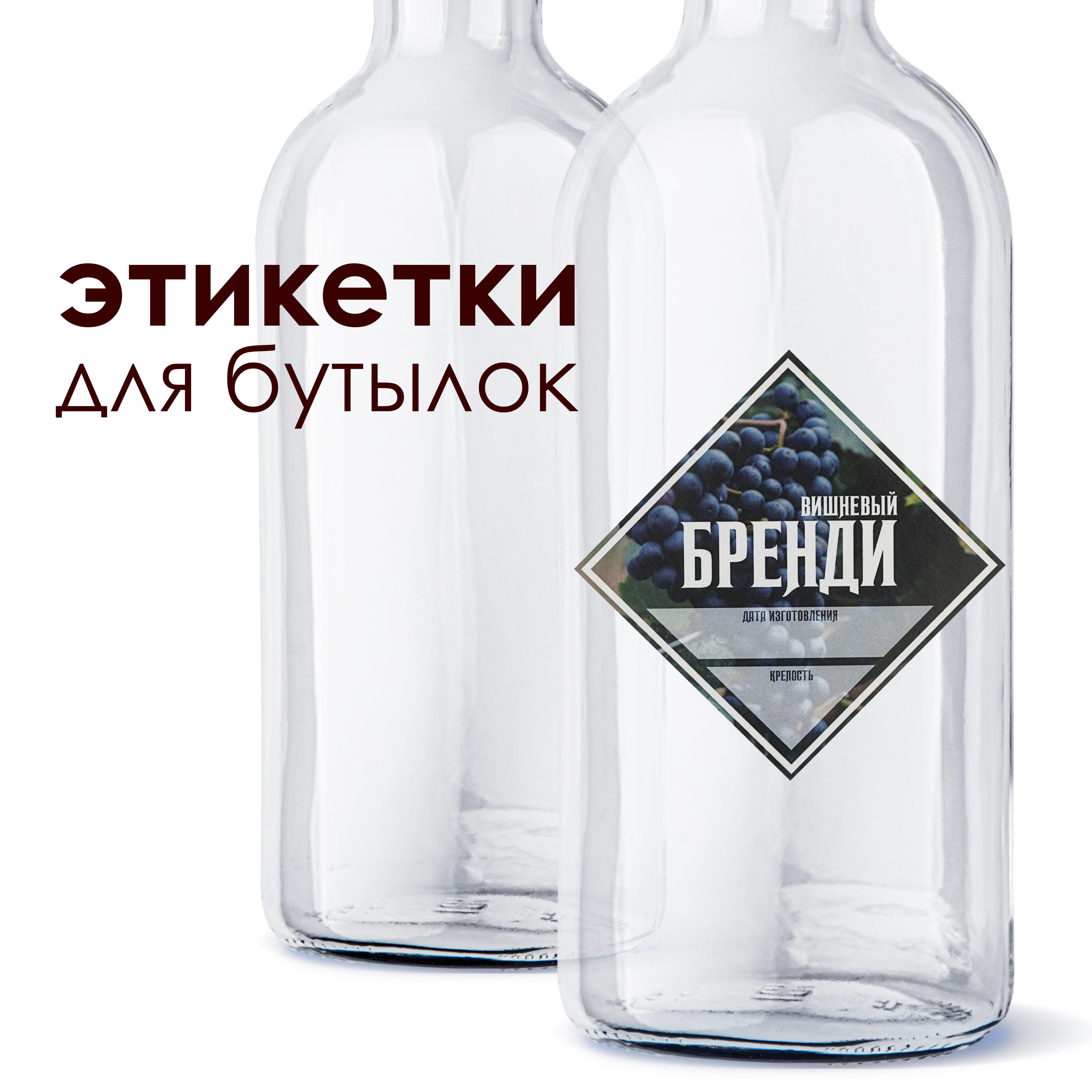 Etiketka dlya butylok "Brendi Vishnevyj"Samokleyashchayasya etiketka "Brendi Vishnevyj" prednaznachena dlya oformleniya butylok s napitkom sobstvennogo prigotovleniya.Razmer: 85 * 85 mmNa naklejke raspolozheno dva polya dlya ruchnogo zapolneniya:Data..