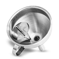 Воронка нержавеющая диаметром 110 мм с фильтром предназначена для удобного розлива различных жидкостей в емкости с узкой горловиной. Корпус воронки из пищевой нержавеющей стали AISI 304 позволяет не беспокоится о ее сохранности при эксплуатации и хранении. Съемная фильтрующая пластина имеет надежную фиксирующую клипсу для обеспечения плотного прилегания к корпусу воронки. Внешний диаметр заливного носика составляет 15 мм, а диаметр воронки 110 мм.